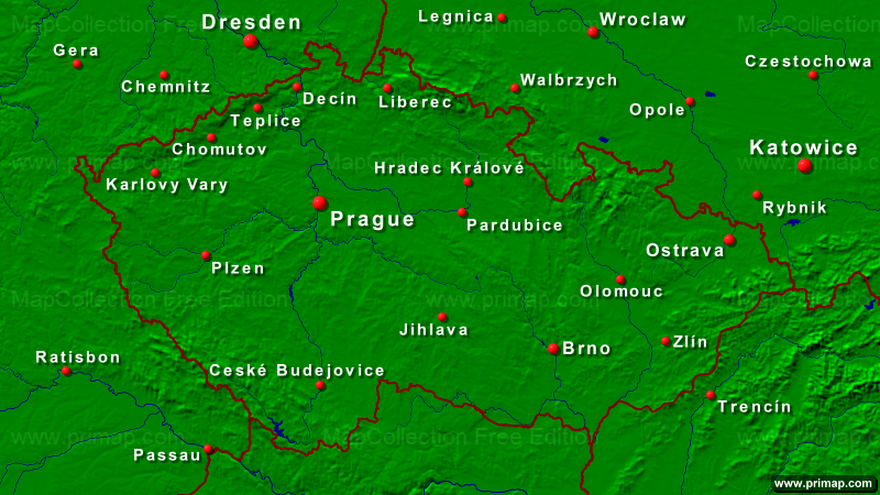 National maps - Czech Republic - Towns + Borders - 800x450 (16:9) large Font