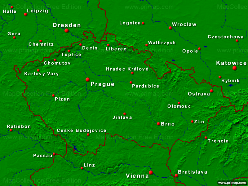 National maps - Czech Republic - Towns + Borders - 800x600 (4:3) large Font