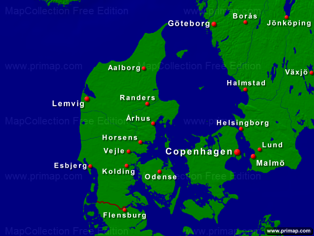 National maps - Denmark - Towns + Borders - 640x480 (4:3) large Font