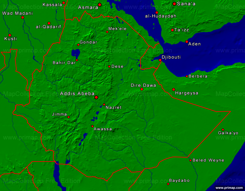 National maps - Ethiopia - Towns + Borders - 800x623 small Font