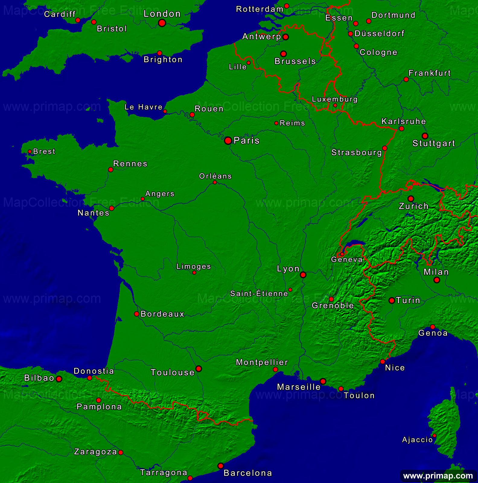 National maps - France - Towns + Borders - 1584x1600 small Font