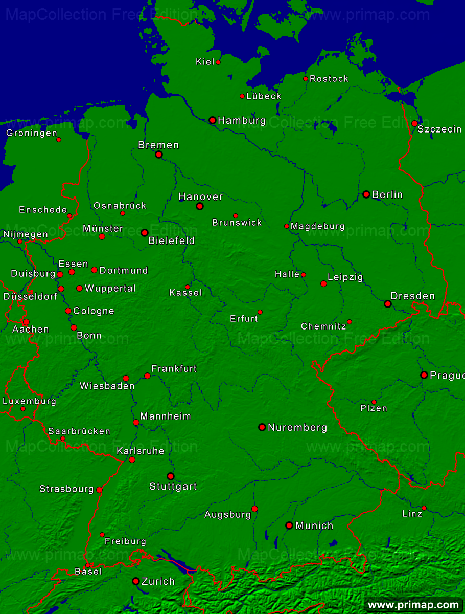 National maps - Germany - Towns + Borders - 910x1200 small Font