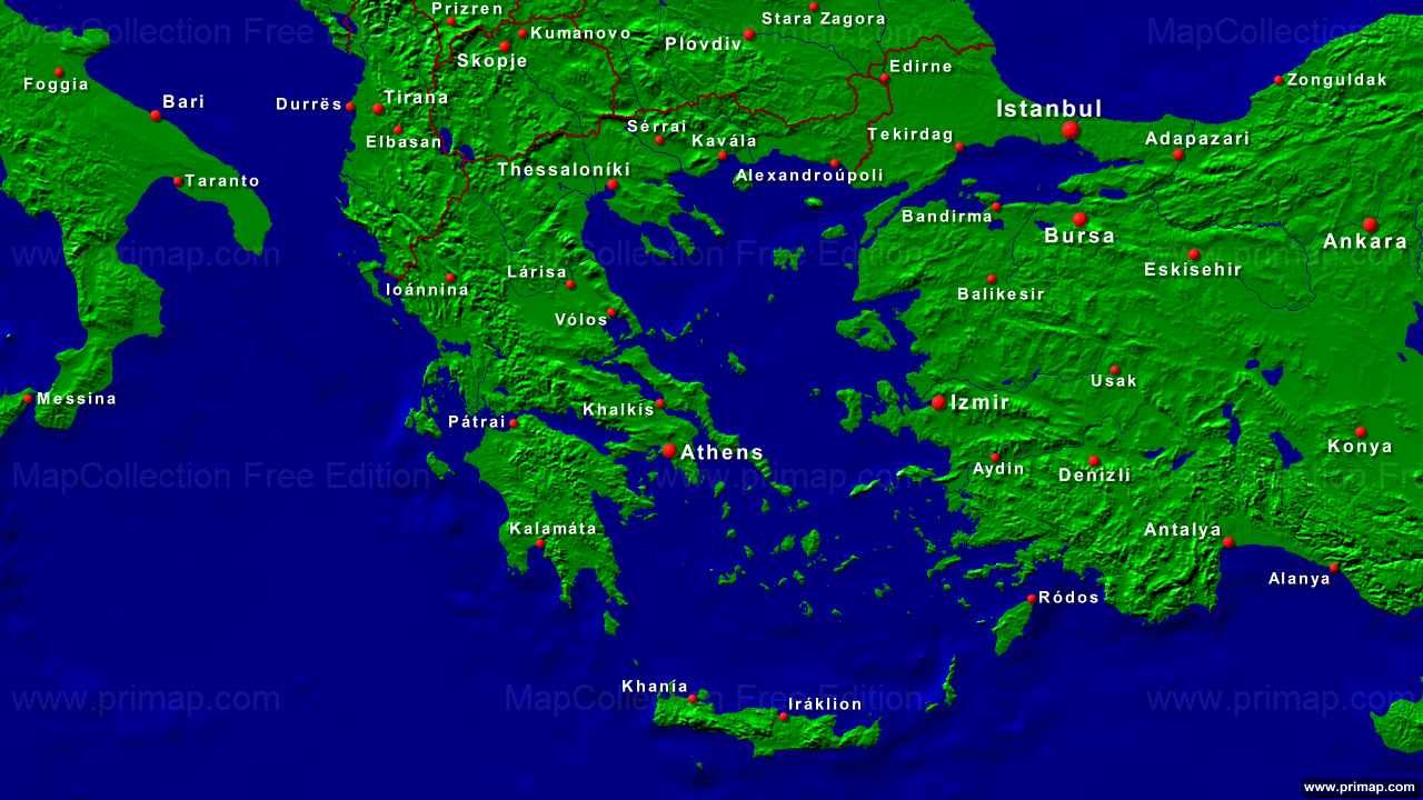 National maps - Greece - Towns + Borders - 1280x720 (16:9) large Font