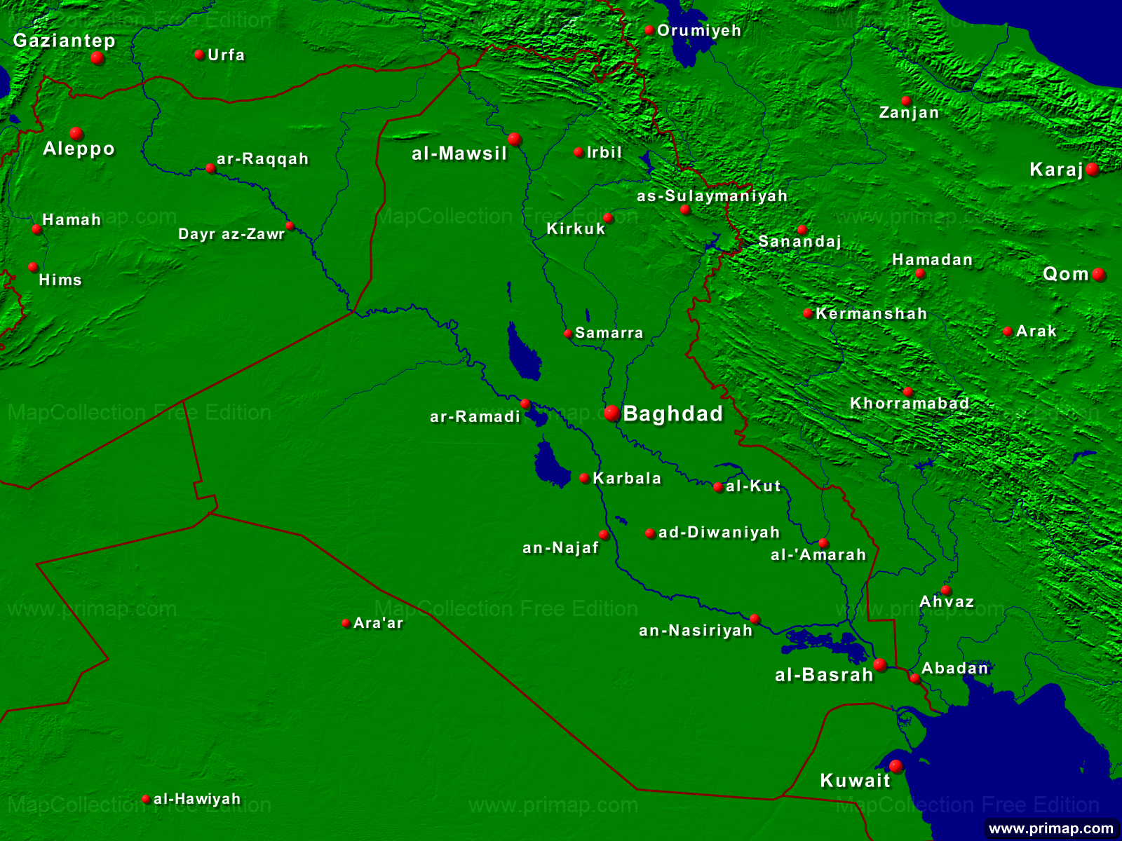 National maps - Iraq - Towns + Borders - 1600x1200 (4:3) large Font