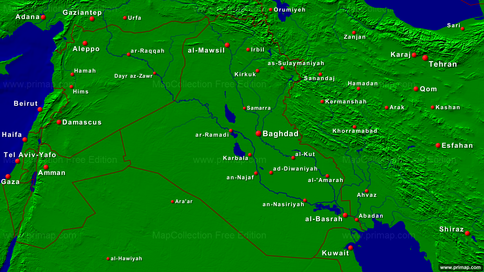 National maps - Iraq - Towns + Borders - 1600x900 (16:9) large Font