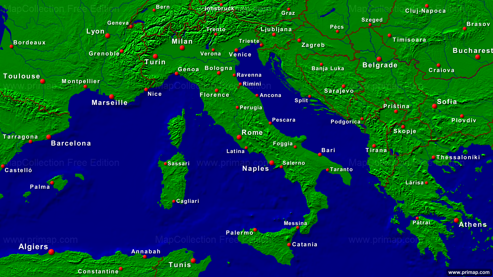 National maps - Italy - Towns + Borders - 1600x900 (16:9) large Font