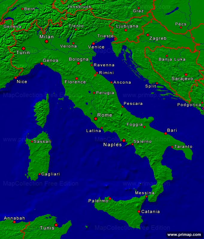 National maps - Italy - Towns + Borders - 681x800 small Font