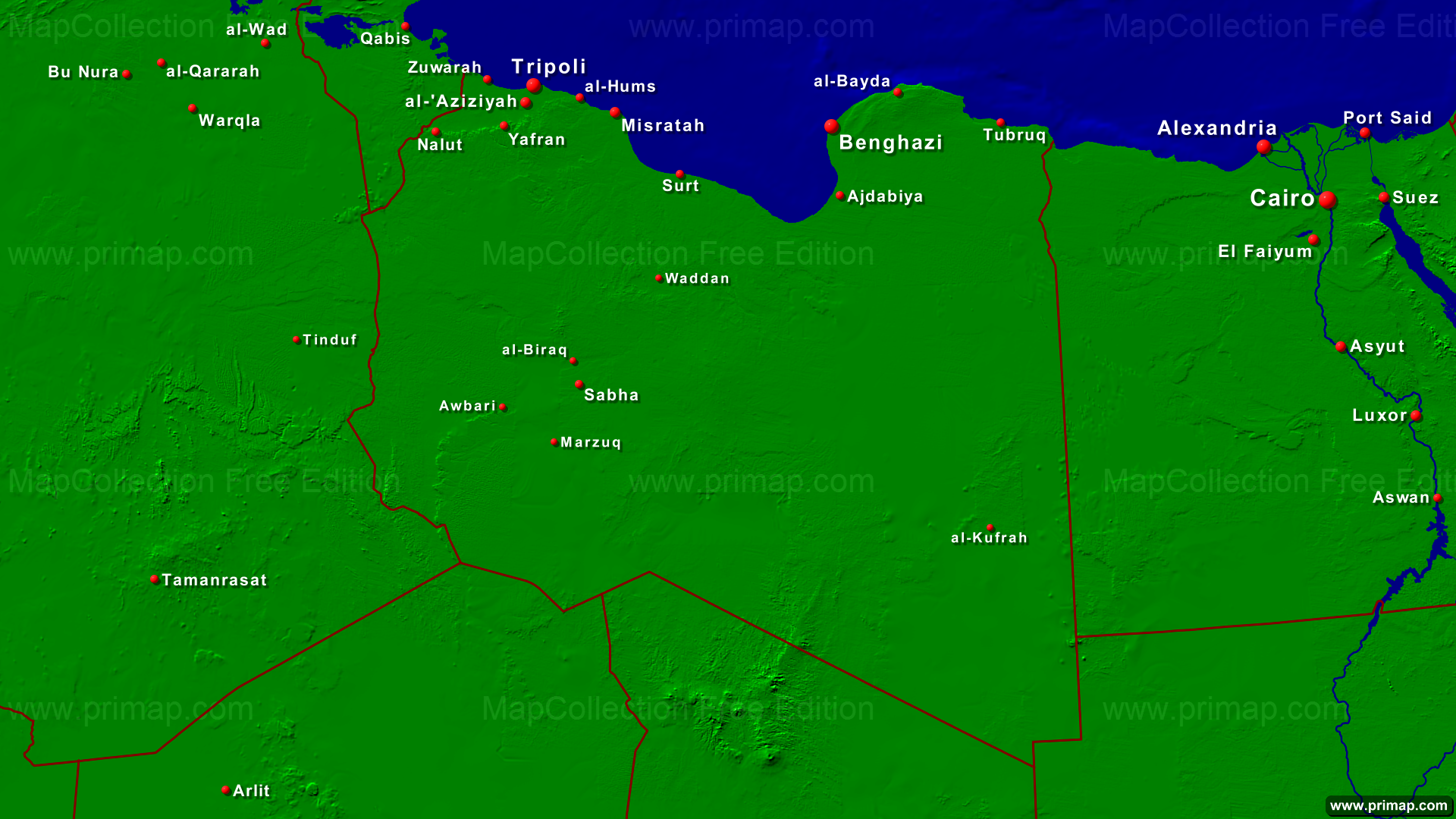 National maps - Libya - Towns + Borders - 1920x1080 (16:9) large Font