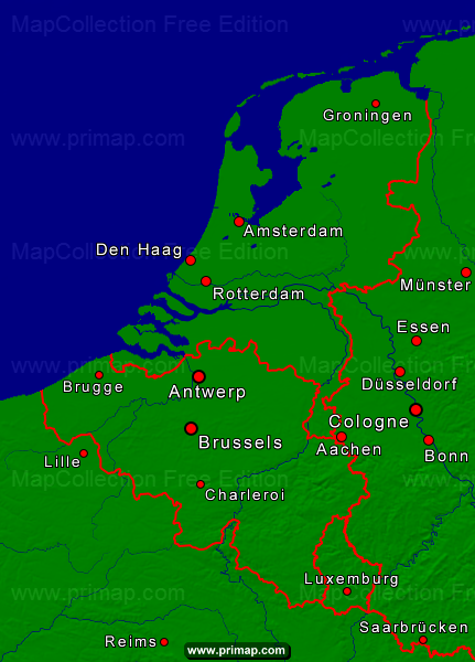 National maps - Low Countries - Towns + Borders - 431x600 small Font