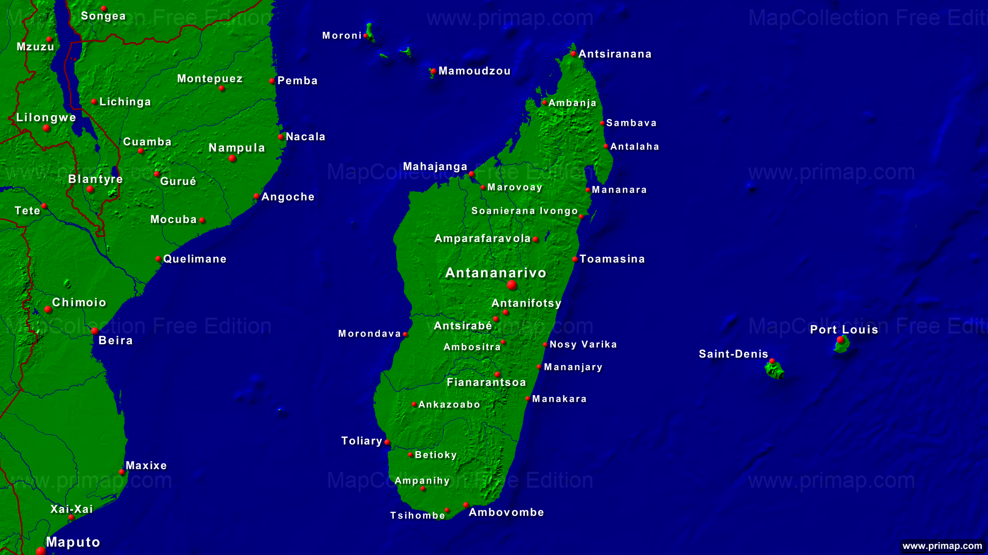 National maps - Madagascar - Towns + Borders - 1920x1080 (16:9) large Font