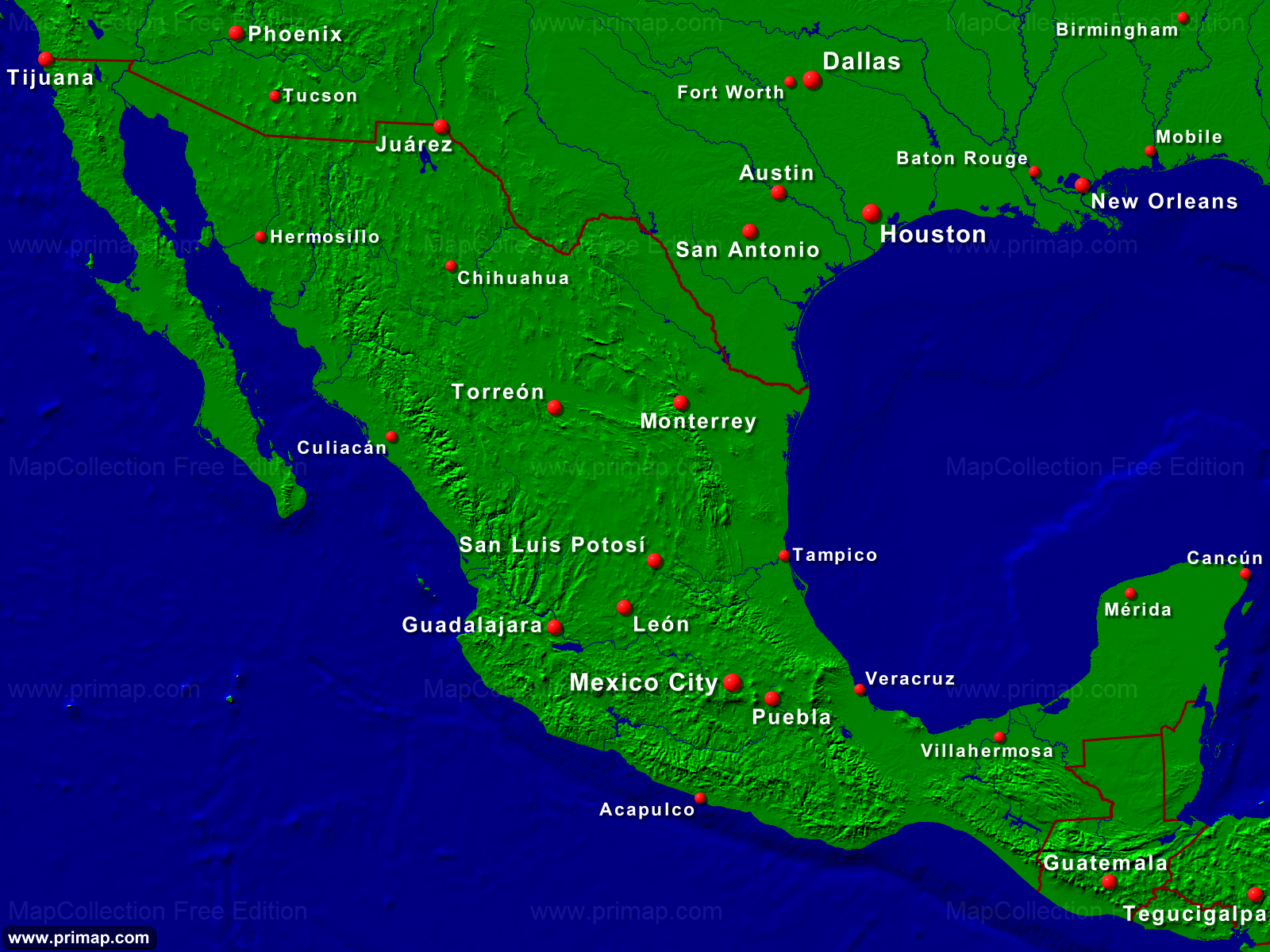 National maps - Mexico - Towns + Borders - 1600x1200 (4:3) large Font