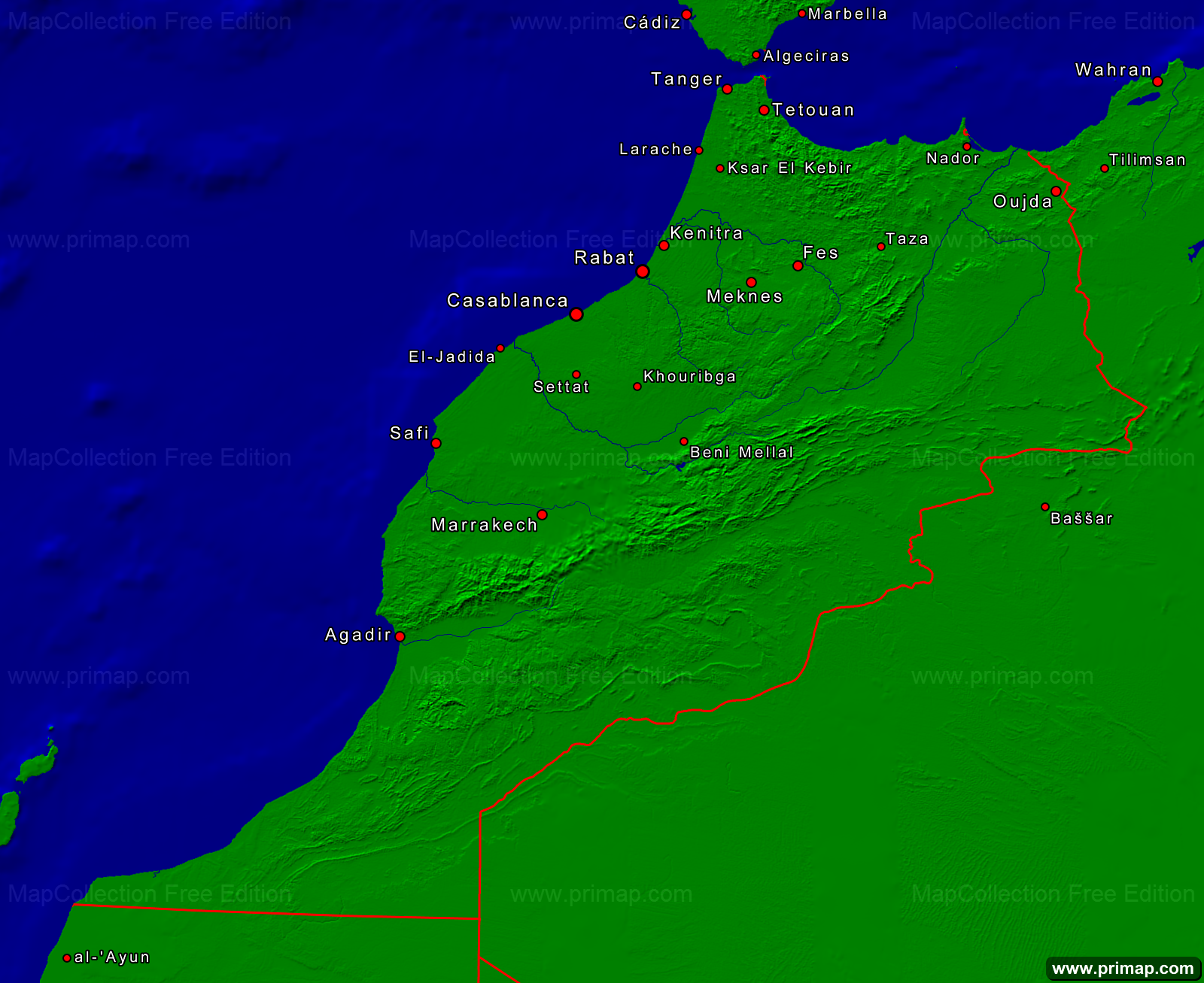 National maps - Morocco - Towns + Borders - 1600x1307 small Font