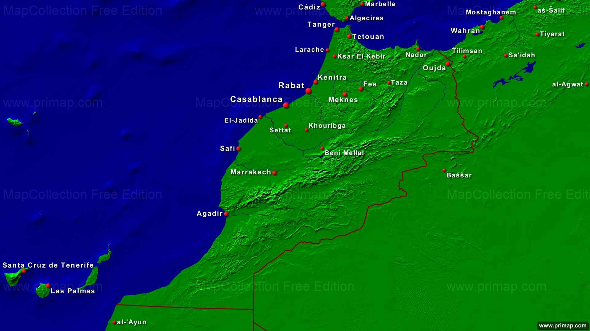National maps - Morocco - Towns + Borders - 1920x1080 (16:9) large Font