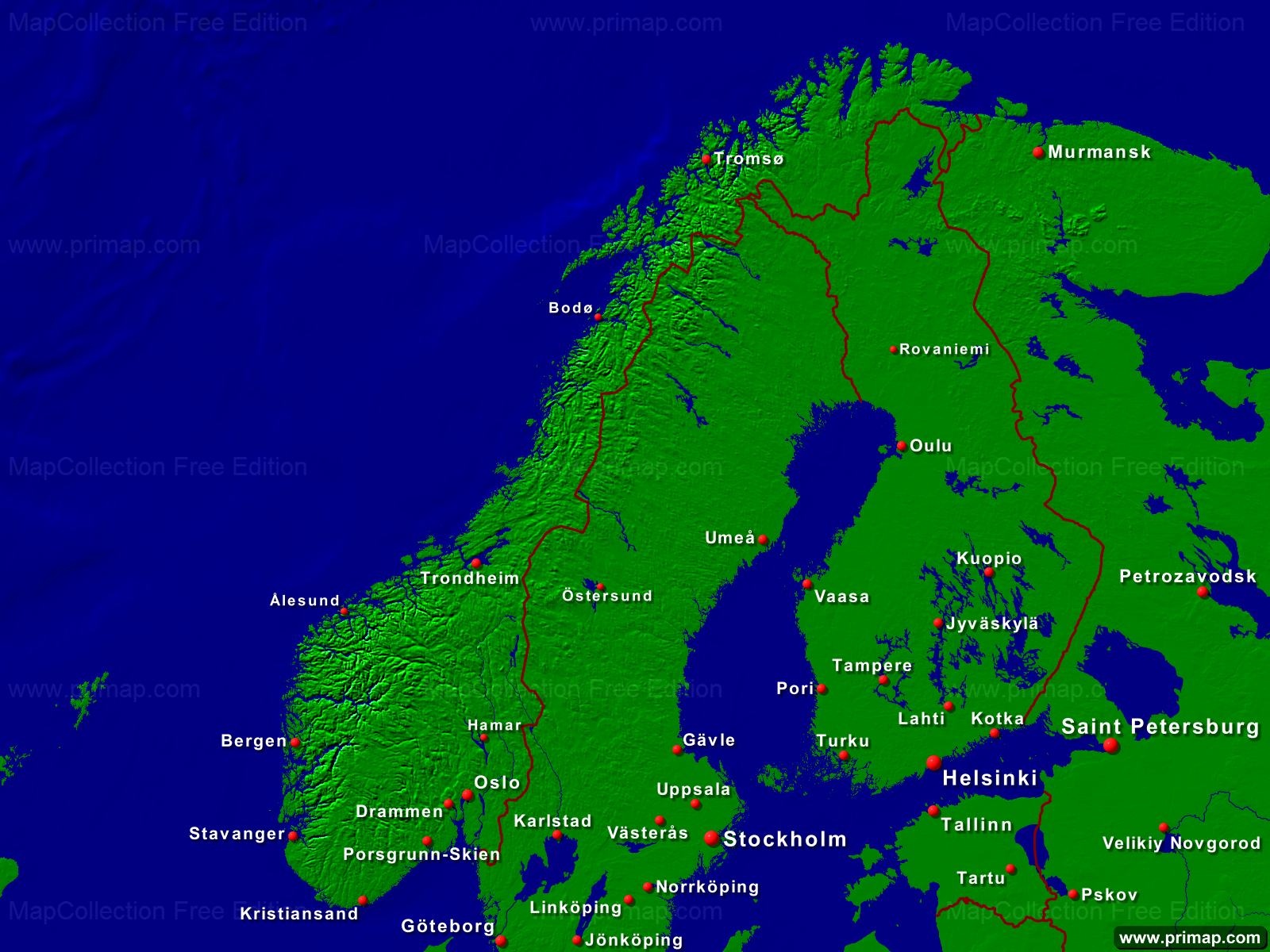 National maps - Norway - Towns + Borders - 1600x1200 (4:3) large Font