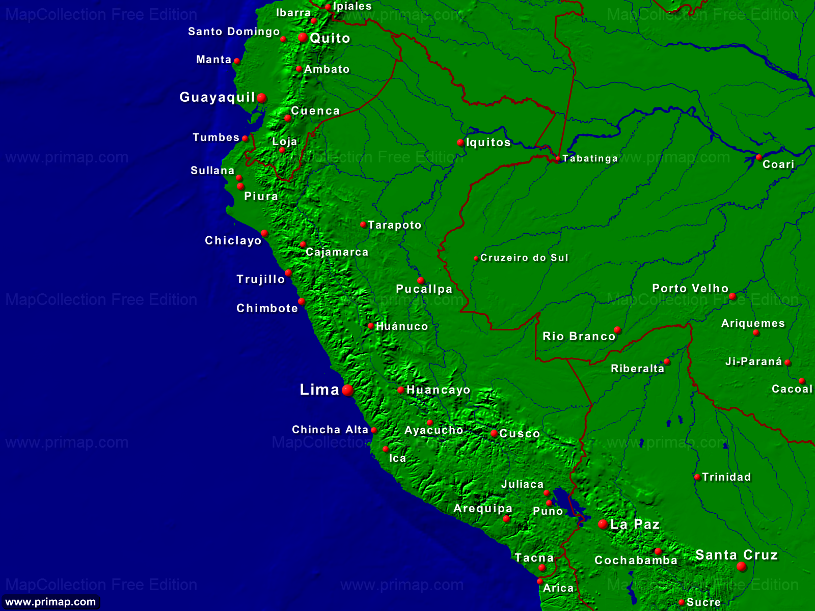 National maps - Peru - Towns + Borders - 1600x1200 (4:3) large Font