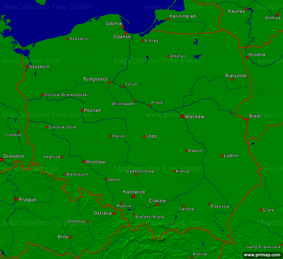 National maps - Poland - Towns + Borders - 1200x1098 small Font