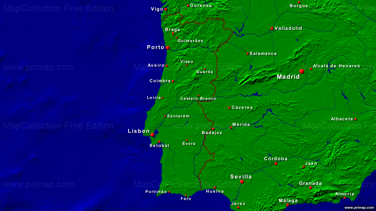 National maps - Portugal - Towns + Borders - 1280x720 (16:9) large Font