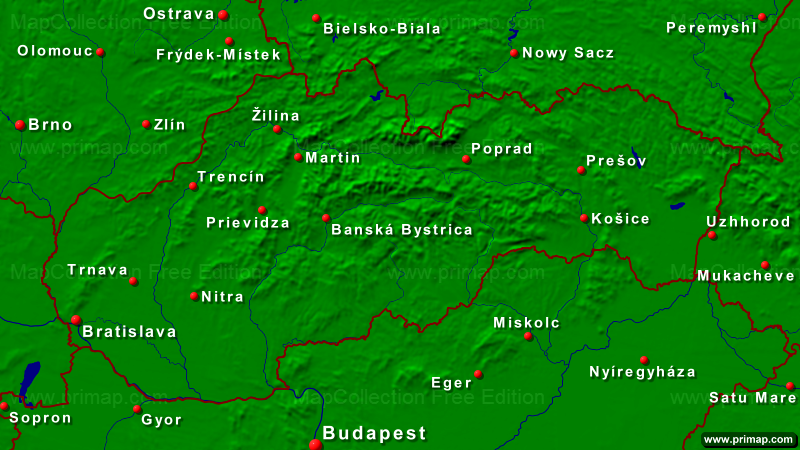 National maps - Slowakia - Towns + Borders - 800x450 (16:9) large Font