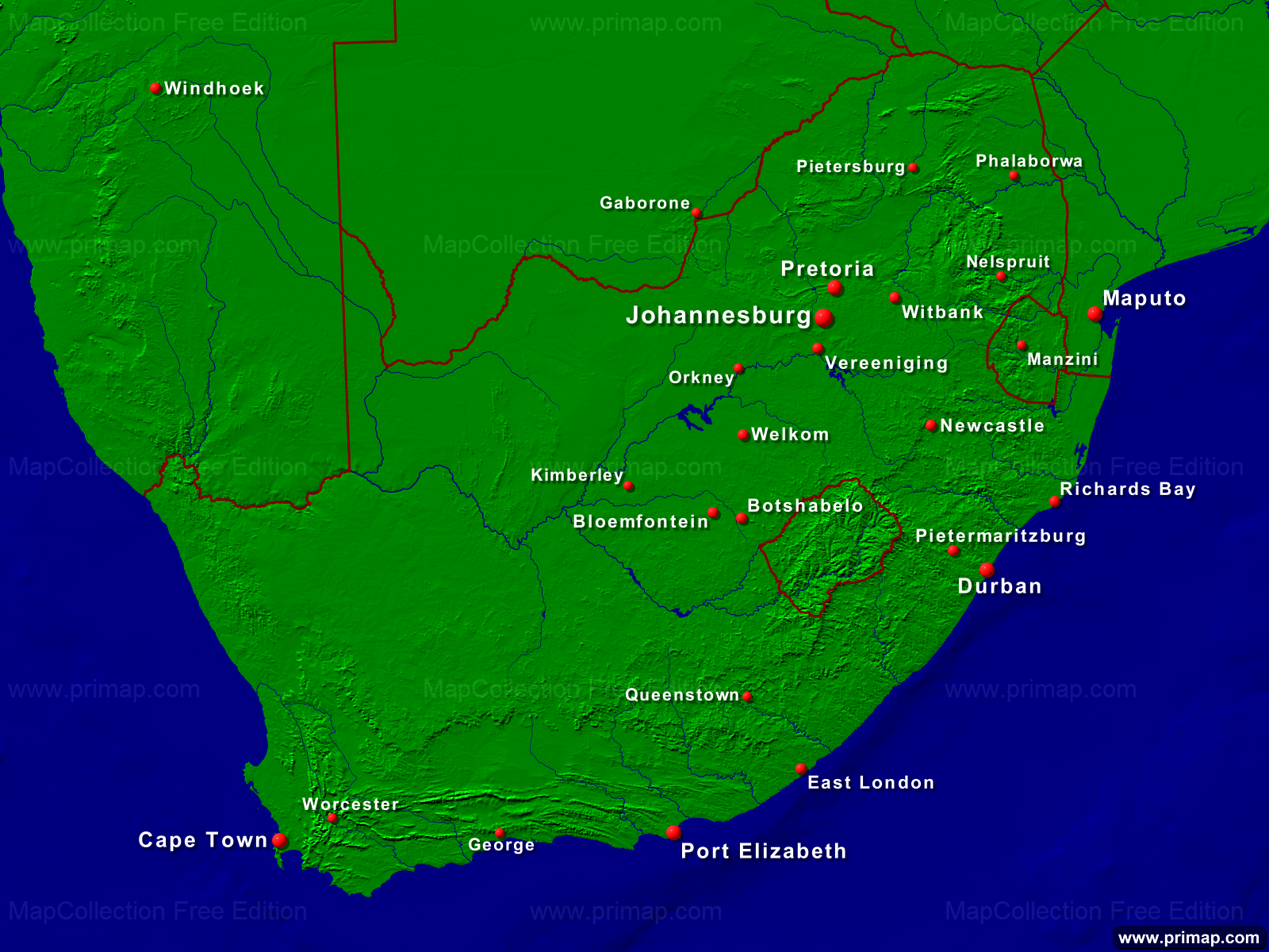 National maps - South Africa - Towns + Borders - 1600x1200 (4:3) large Font