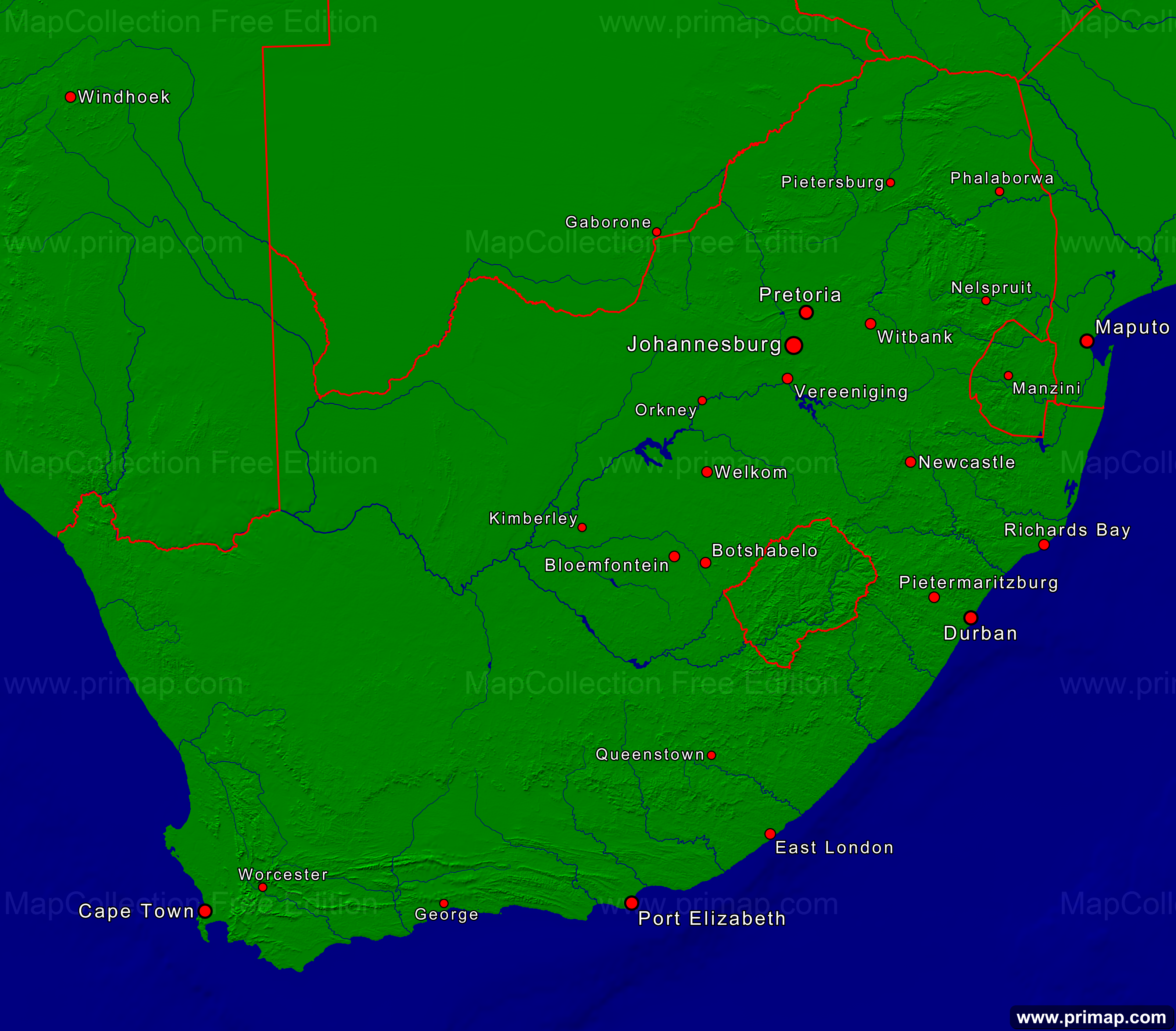National maps - South Africa - Towns + Borders - 3200x2805 small Font