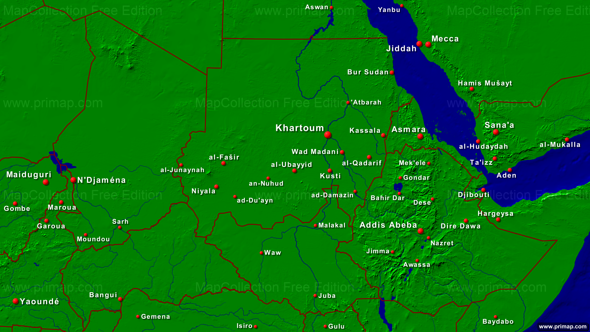 National maps - Sudan - Towns + Borders - 1920x1080 (16:9) large Font