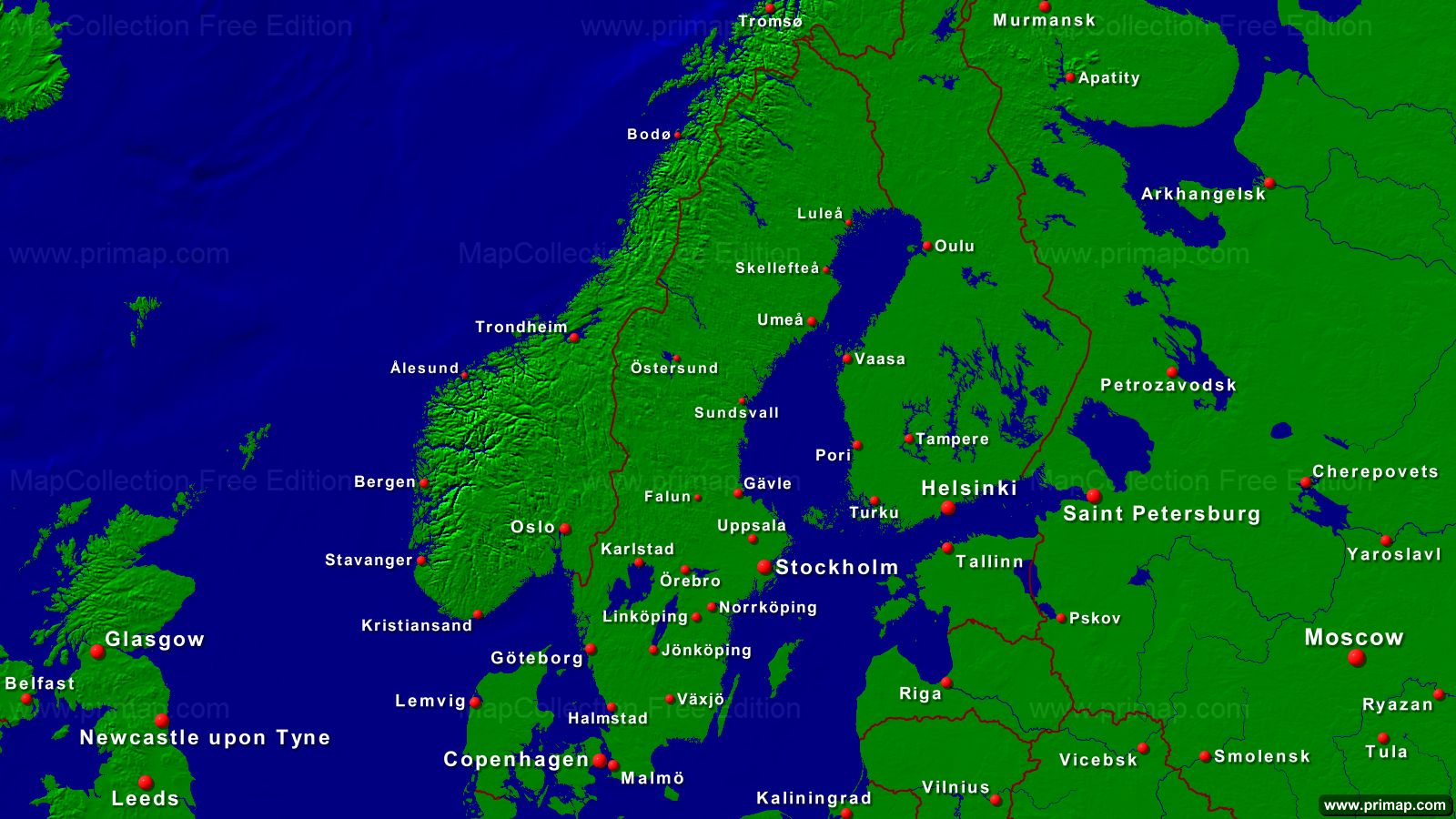 National maps - Sweden - Towns + Borders - 1600x900 (16:9) large Font