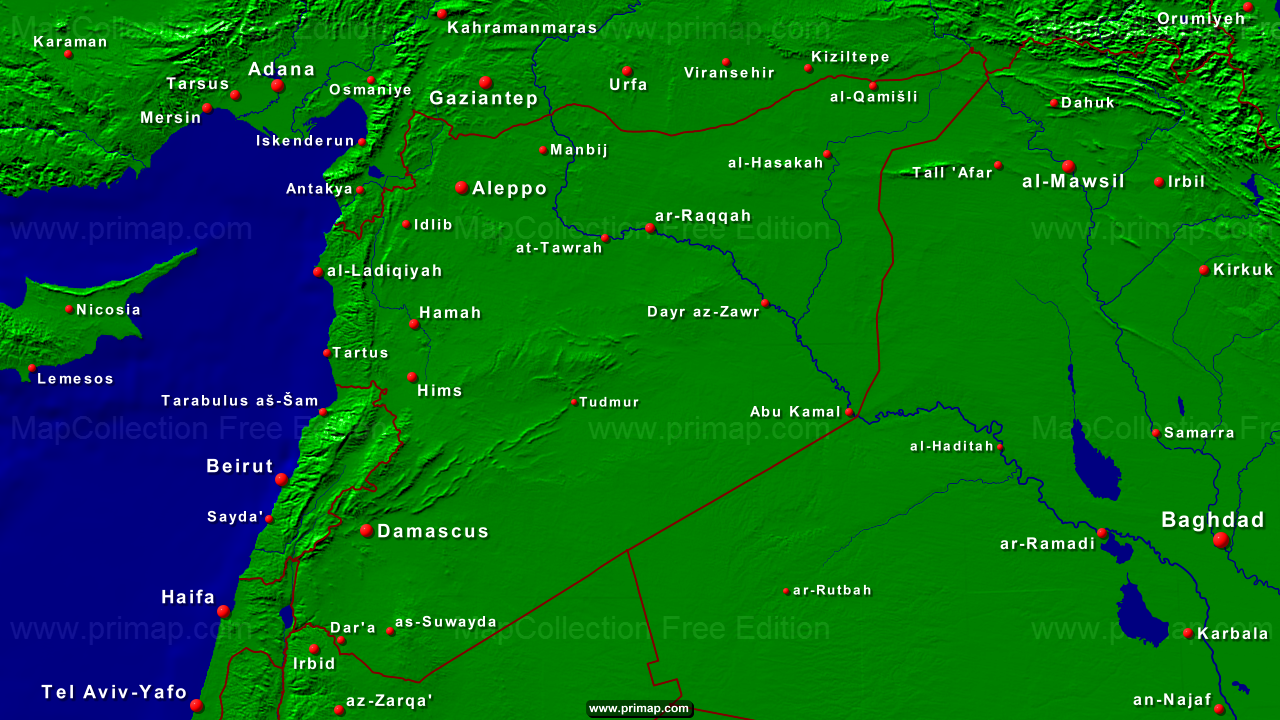 National maps - Syria - Towns + Borders - 1280x720 (16:9) large Font