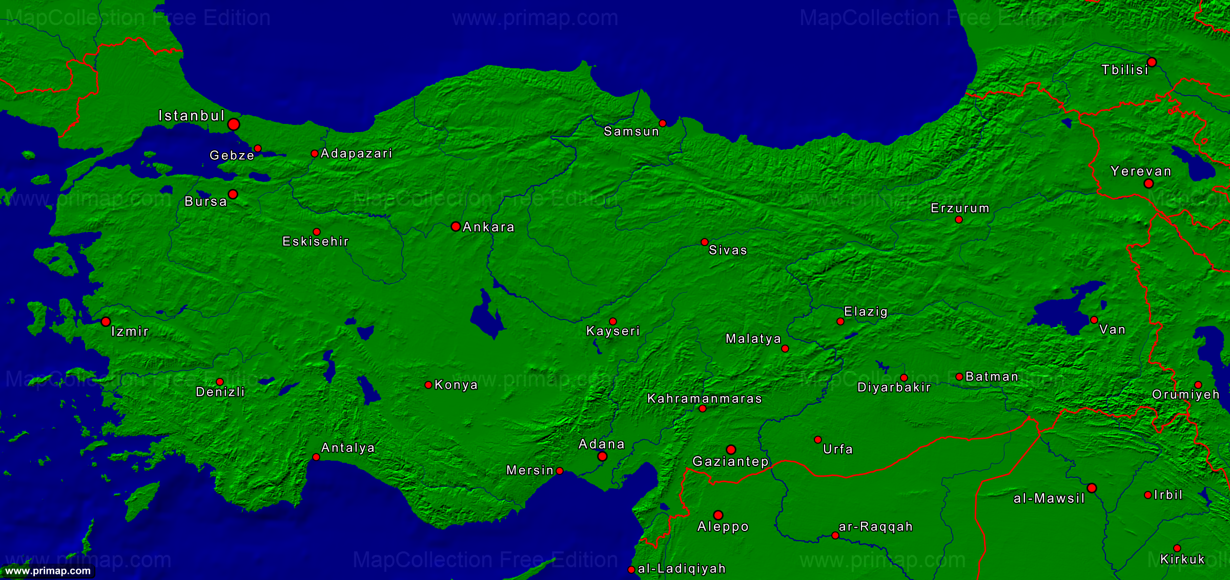 National maps - Turkey - Towns + Borders - 2400x1133 small Font