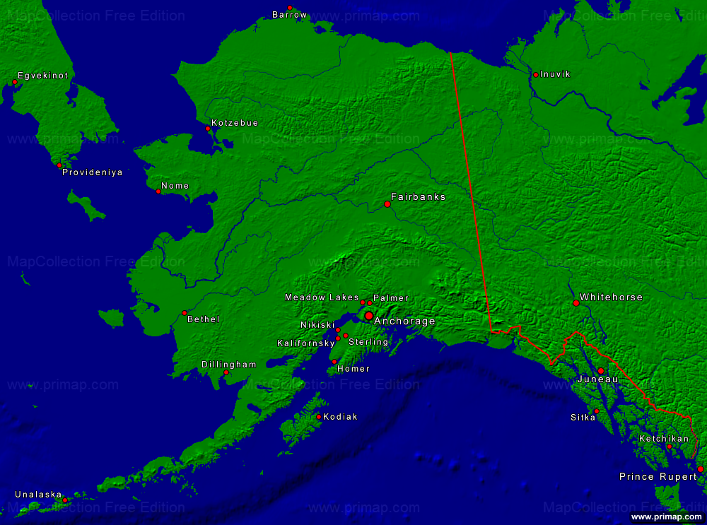 National maps - USA-Alaska - Towns + Borders - 1000x743 small Font