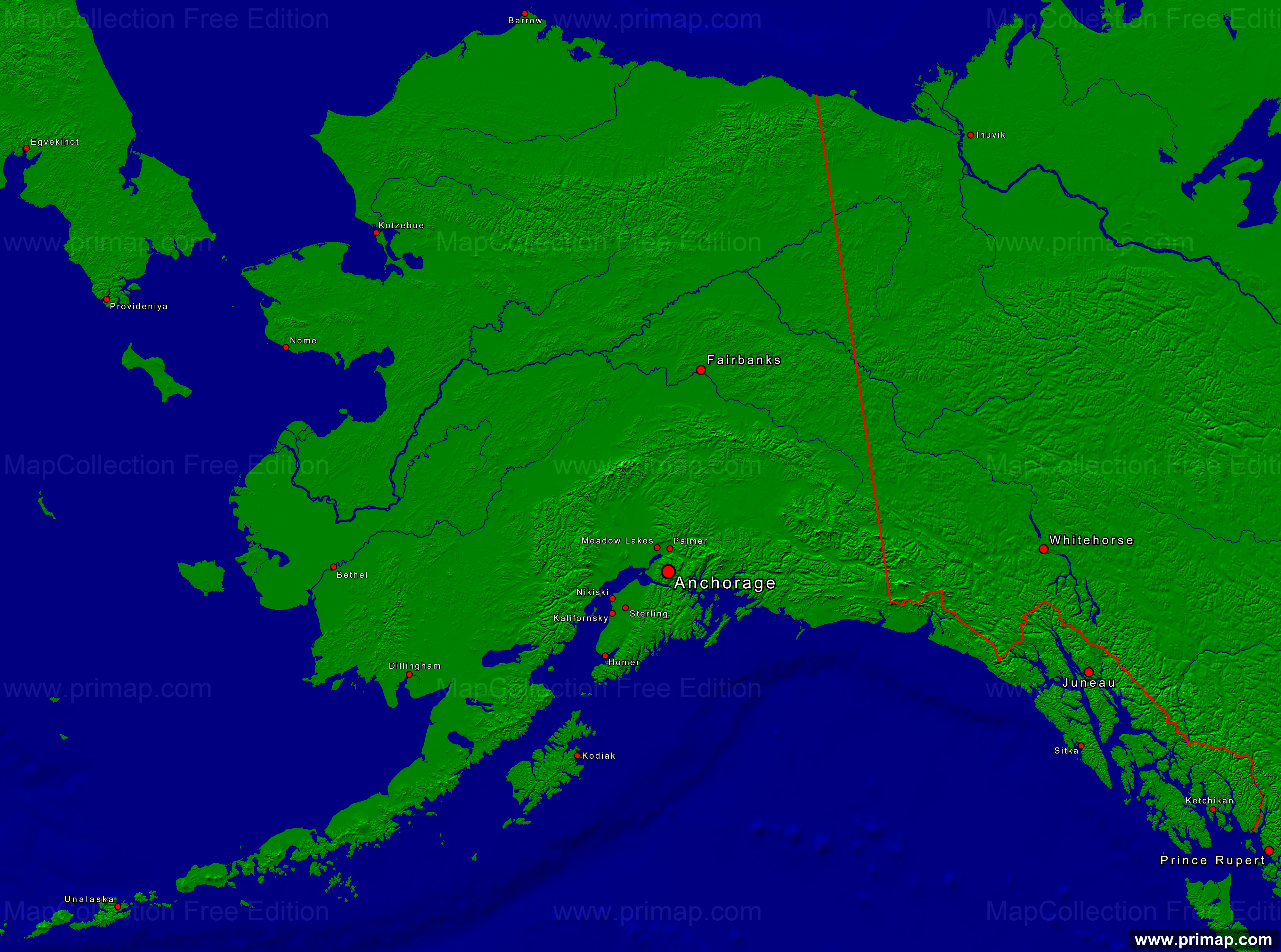 National maps - USA-Alaska - Towns + Borders - 4000x2974 small Font