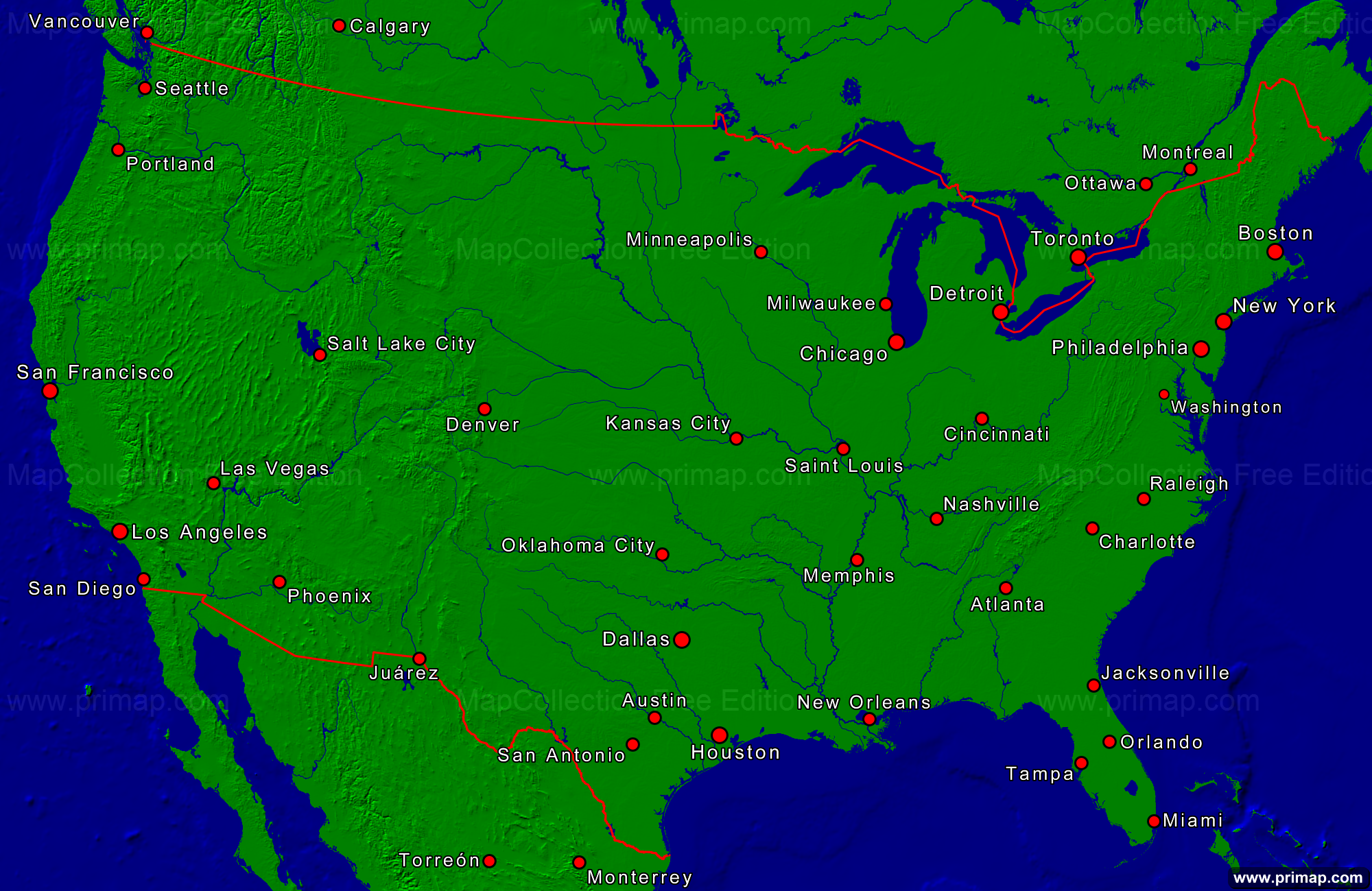 The Personal and Professional Edition of this Map are components of the MapCollection Package National maps - America.