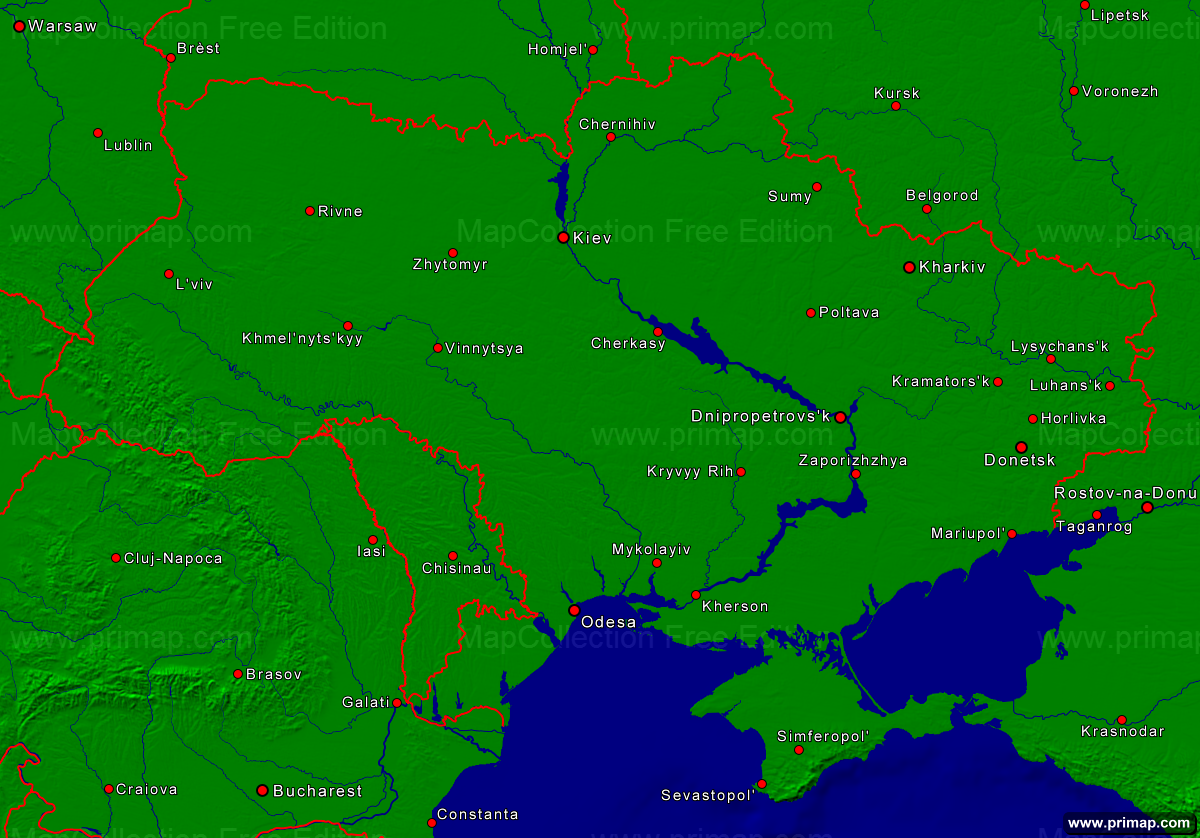National maps - Ukraine - Towns + Borders - 1200x838 small Font