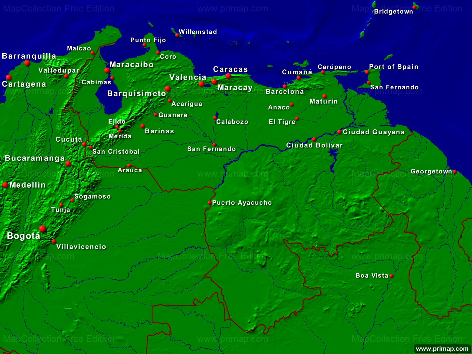 National maps - Venezuela - Towns + Borders - 1600x1200 (4:3) large Font