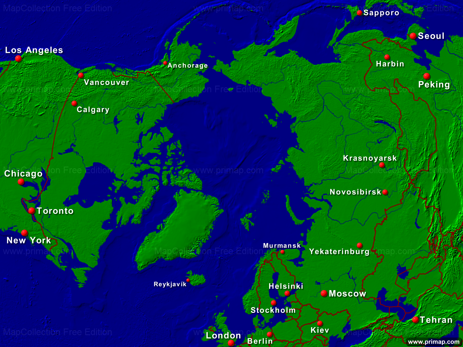 Pole maps - North pole - Towns + Borders - 1600x1200 (4:3) large Font