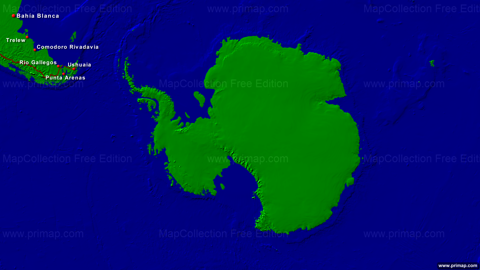 Pole maps - South pole Type 1 - Towns + Borders - 1920x1080 (16:9) large Font