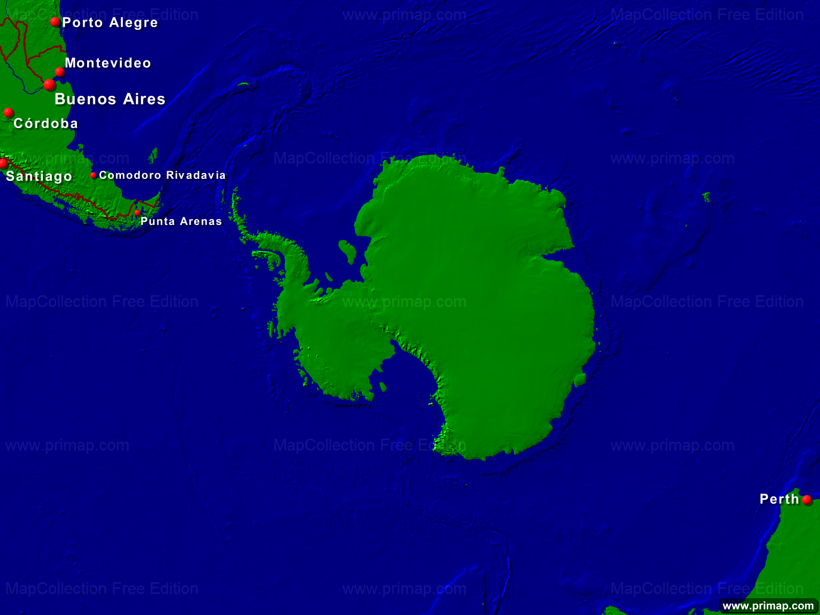 Pole maps - South pole Type 2 - Towns + Borders - 1600x1200 (4:3) large Font