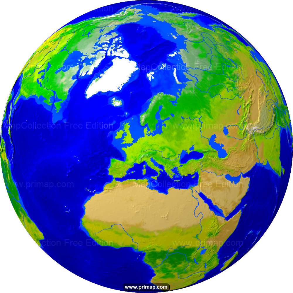 World maps - Globe (Europe-centered) - Vegetation - 1000x1000