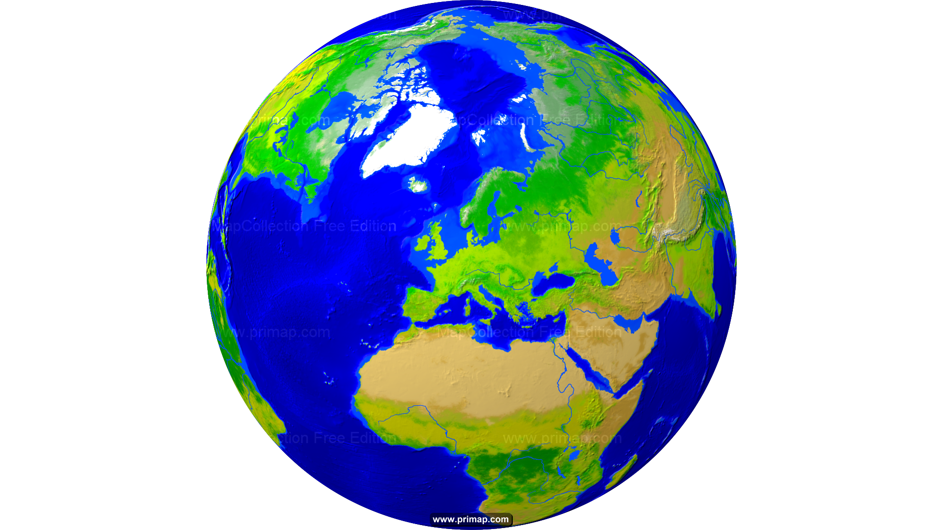 World maps - Globe (Europe-centered) - Vegetation - 1920x1080 (16:9)